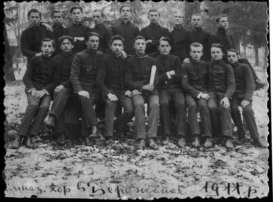 Хор Бережанської гімназії (1911 р.). Микола Содомора сидить перший зліва.